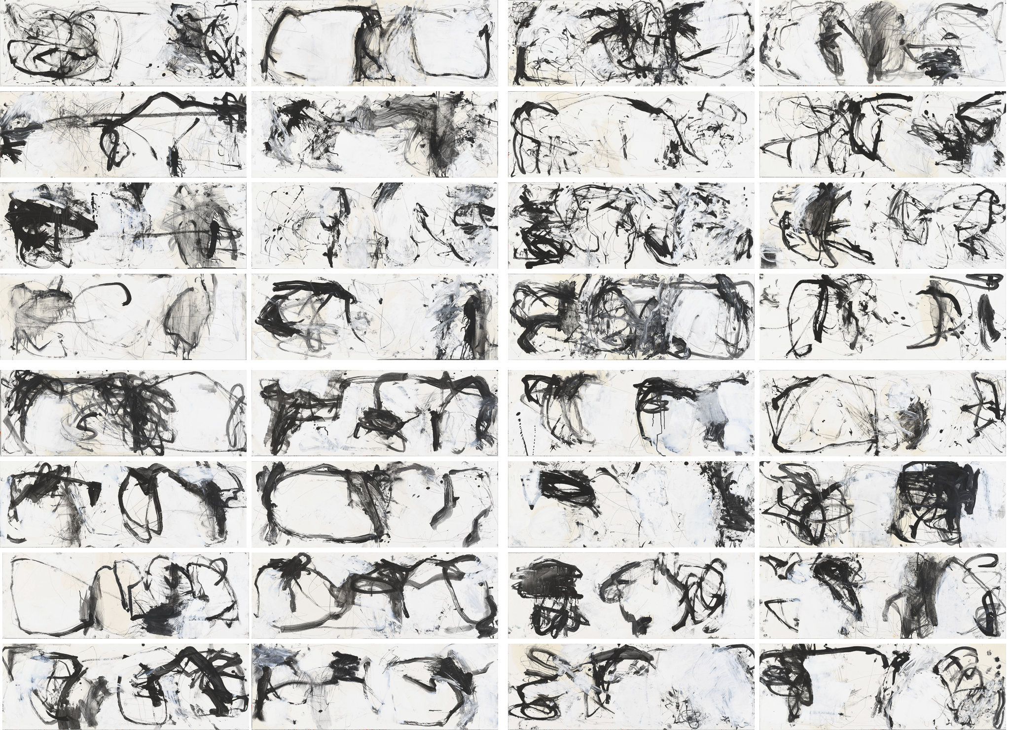 32 ZEICHNUNGEN (Öl, Bleistift auf Papier, je 100 × 35 cm)