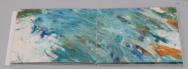 Buchunikat B_9, 22,5 × 22,5 cm, 9 Doppelseiten, Öl, Bleistift auf Papier