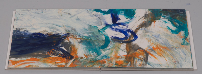 Buchunikat E_9, 22,5 × 22,5 cm, 9 Doppelseiten, Öl, Bleistift auf Papier