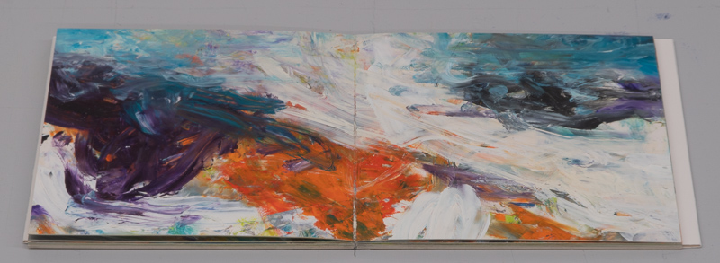 Buchunikat B_9, 22,5 × 22,5 cm, 9 Doppelseiten, Öl, Bleistift auf Papier
